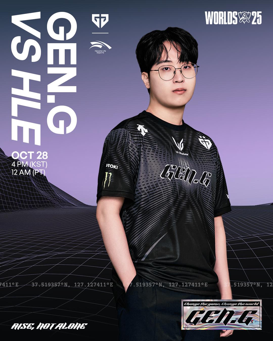 虎撲10月27日訊 GEN今日發(fā)布對陣HLE賽前海報,配文如下: