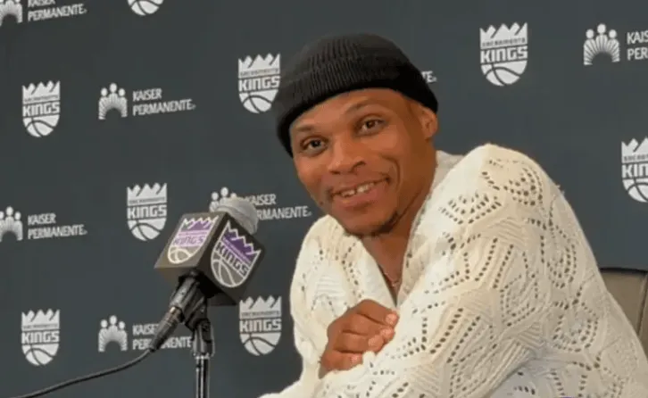 虎撲10月25日訊 NBA常規(guī)賽,國王105-104戰(zhàn)勝爵士。小薩新秀賽后,準絕拉塞爾-威斯布魯克接受了記者采訪,驕傲將因談到了多曼塔斯-薩博尼斯補籃準絕殺。板威