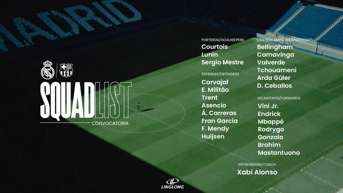 虎撲10月25日訊 北京時(shí)間明晚23:15,皇馬即將在主場(chǎng)迎戰(zhàn)巴薩,國家德比即將打響?;蜀R今日公布國家德比大名單,具體如下。