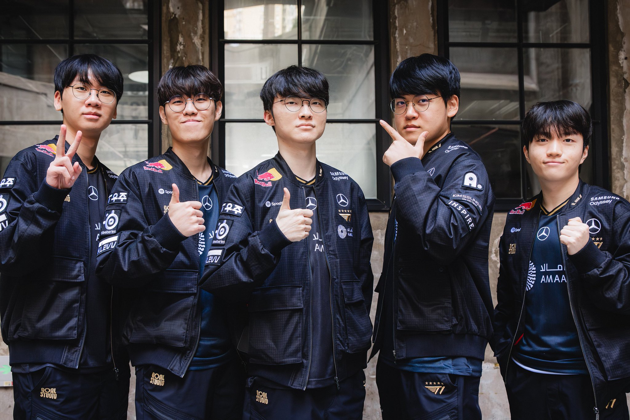 虎撲10月31日訊 LOL官方分享GEN、KT、配文TES、官方T1戰(zhàn)隊(duì)合照并配文: