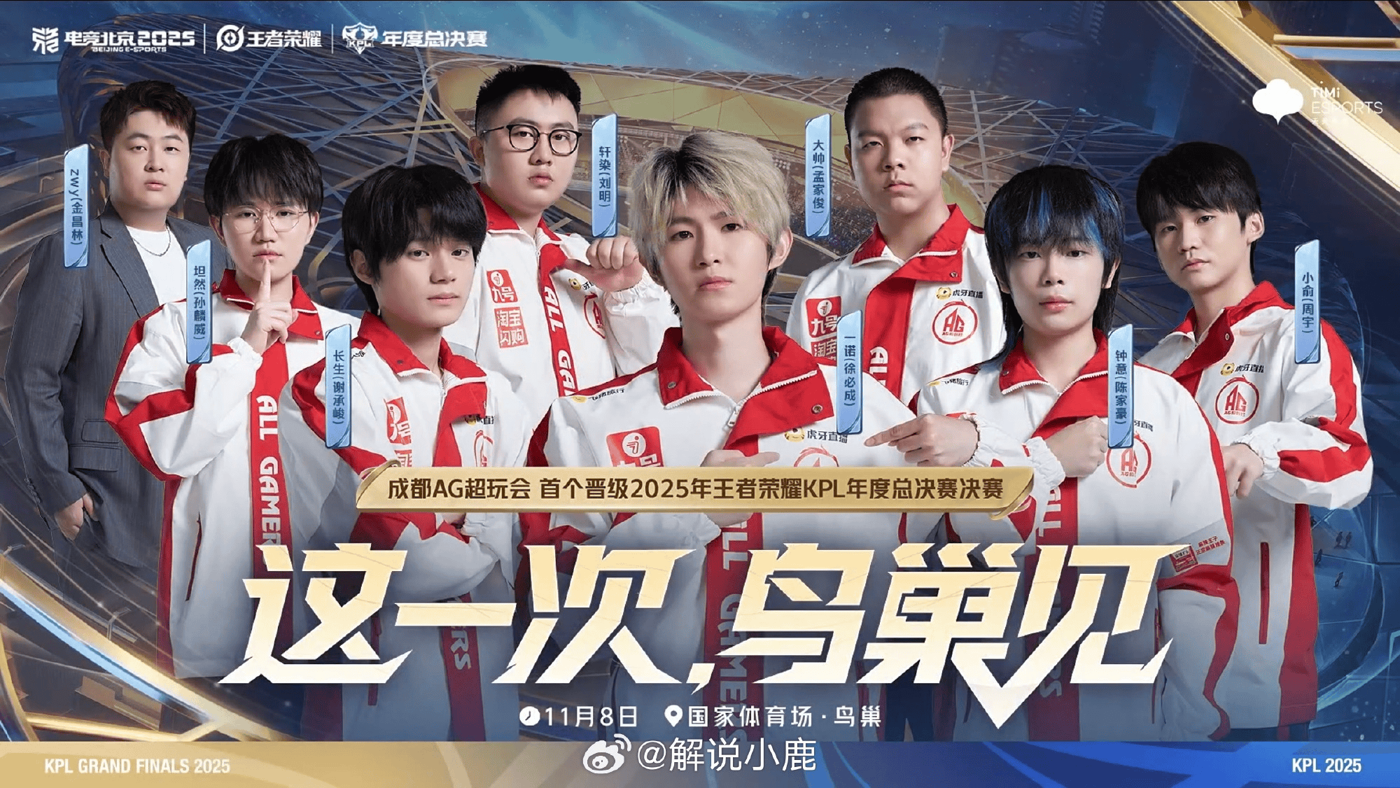 虎撲10月31日訊 小鹿發(fā)文:恭喜AG成為第一支站上鳥巢的KPL戰(zhàn)隊,鳥巢見!成巢