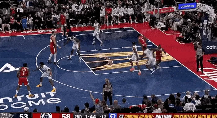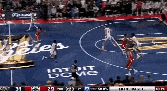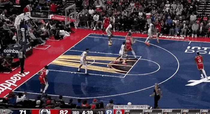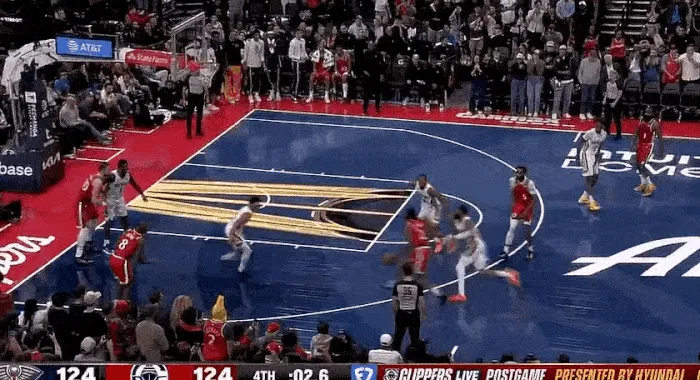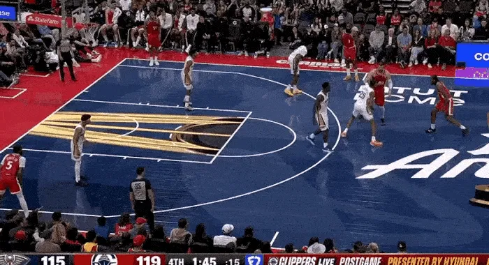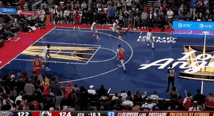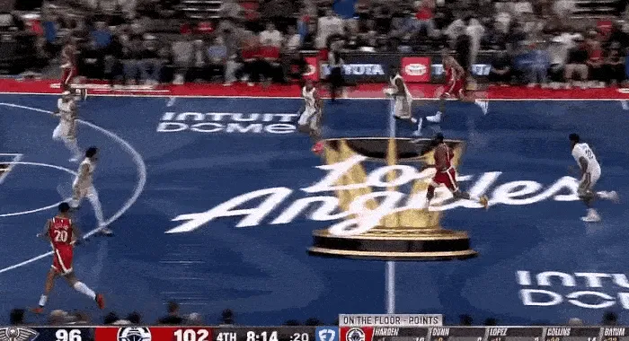 第三節(jié)最多領(lǐng)先到 17 分,卻又被頑強(qiáng)的鵜鶘追上,打到關(guān)鍵時(shí)刻,鵜鶘在最后時(shí)刻罰球追平比分,快船最后一攻,沒有暫停,小卡利用個(gè)人能力強(qiáng)行,強(qiáng)行出手,殺死比賽。