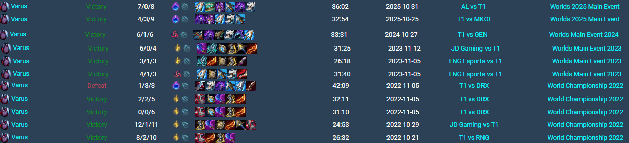虎撲11月02日訊 2025全球總決賽半決賽T1 vs TES第一局,Gumayusi使用韋魯斯助隊(duì)獲勝,局G績(jī)而Gumayusi韋魯斯在世界賽的魯斯連勝舞臺(tái)上也來(lái)到了七連勝。