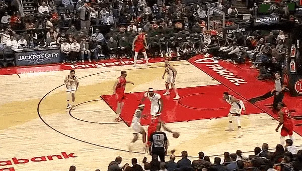 NBA常規(guī)賽,猛龍主場迎戰(zhàn)雄鹿的頂開比賽正在進行中。