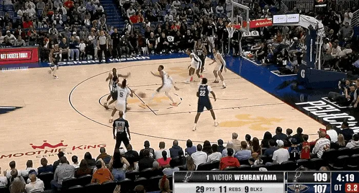 NBA常規(guī)賽,馬刺對(duì)陣鵜鶘的文班比賽正在進(jìn)行中。